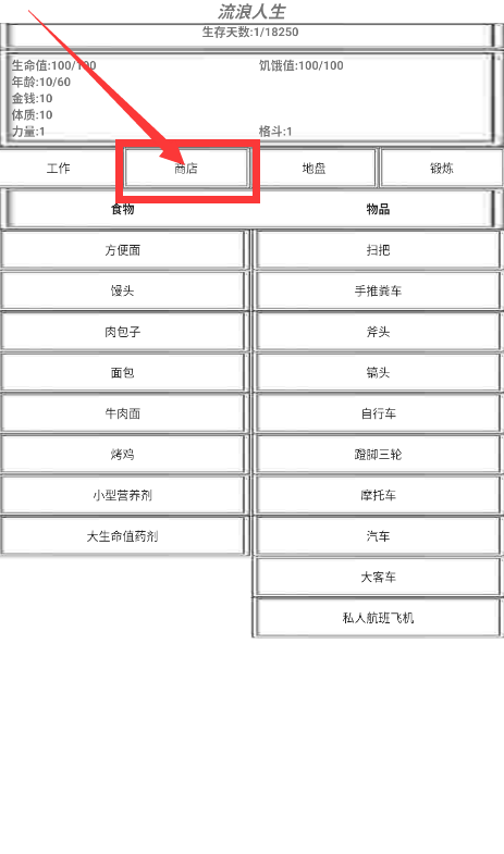 1、进入游戏后你扮演一个十岁流浪儿童,需要先学会基本生存技能。点击屏幕上的交互点,比如垃圾桶可以捡瓶子,收集废品后去回收站卖掉换钱。
