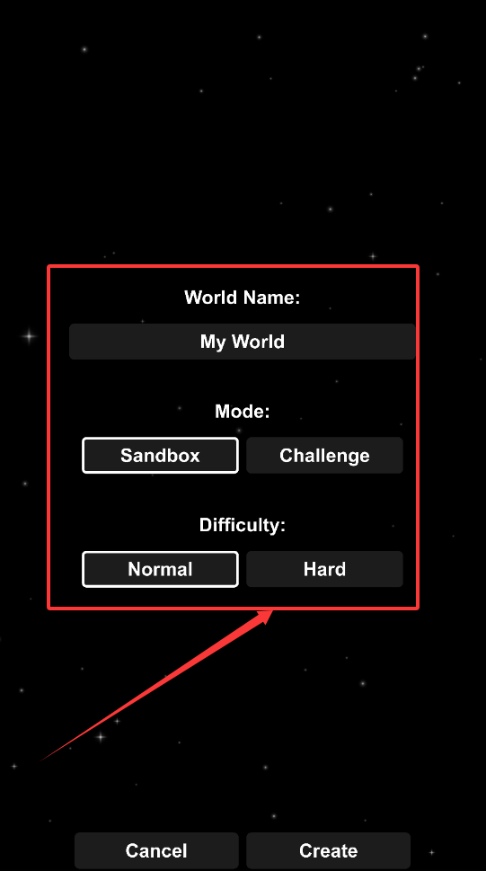 3、创建世界时,你需要为世界起个名字,比如“我的世界”。接着选择模式,新手建议先用“沙盒模式”来自由探索。