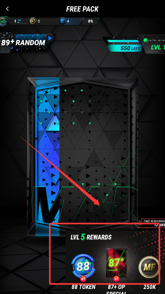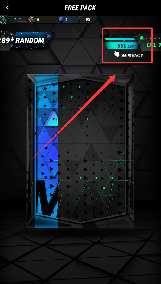 1、首先关注免费福利板块,从截图里能看到免费卡包、89+随机卡和550剩余资源等标识。