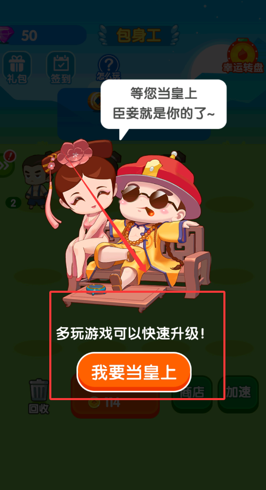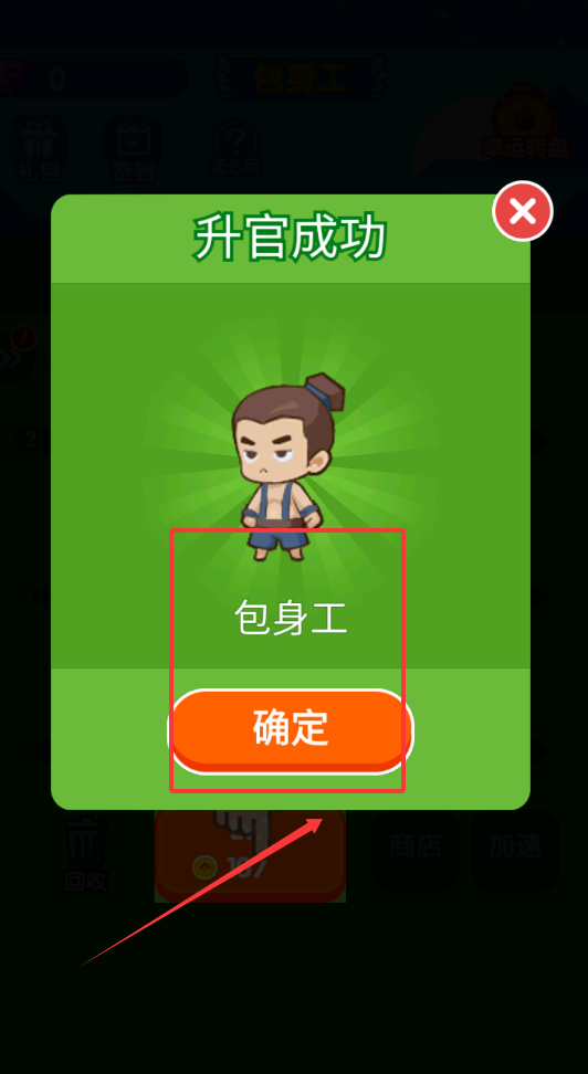3、升级后会有弹窗提示升官成功,你可以点击确定继续,同时多玩小游戏或完成签到任务能快速提升等级,目标是当上皇上哦。