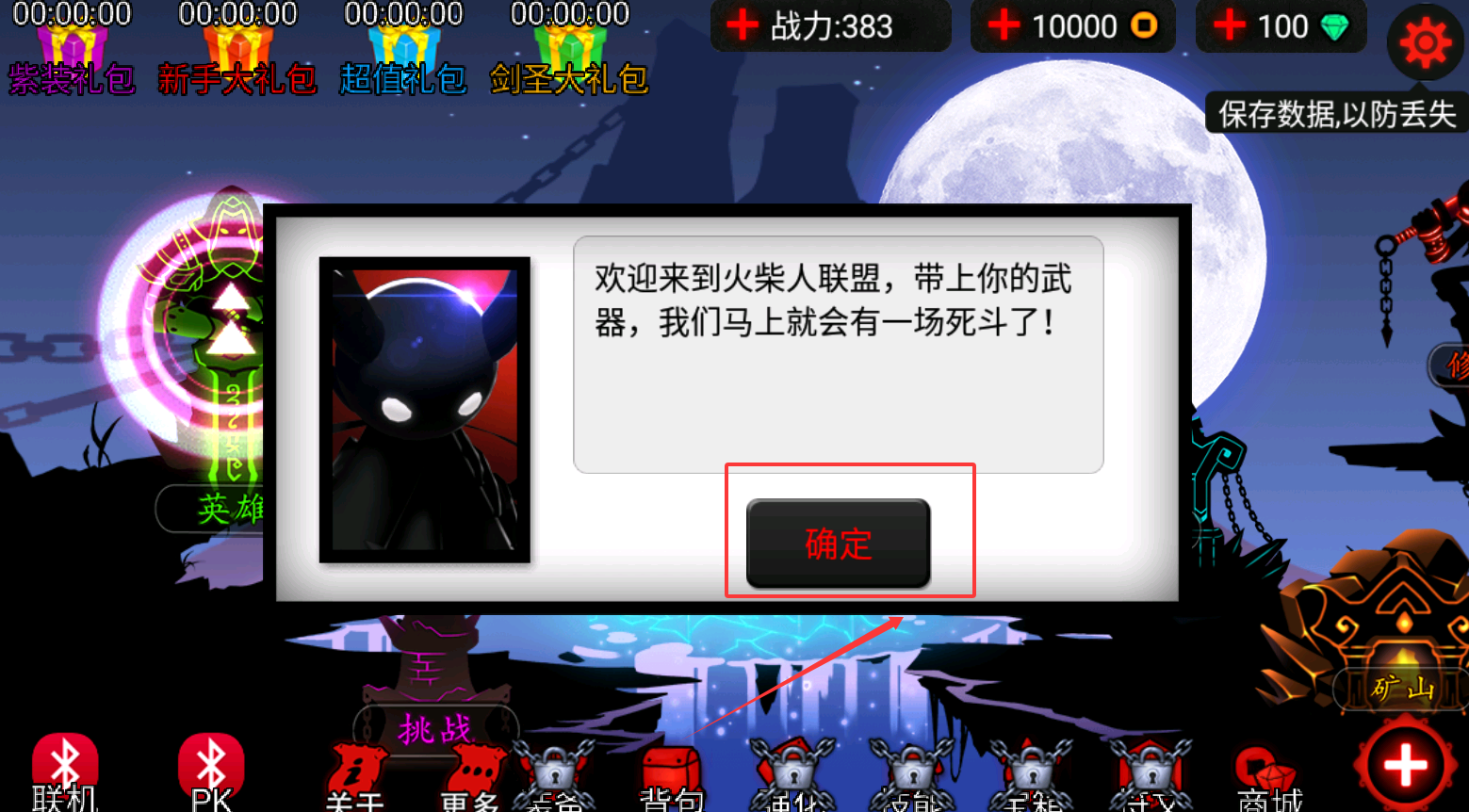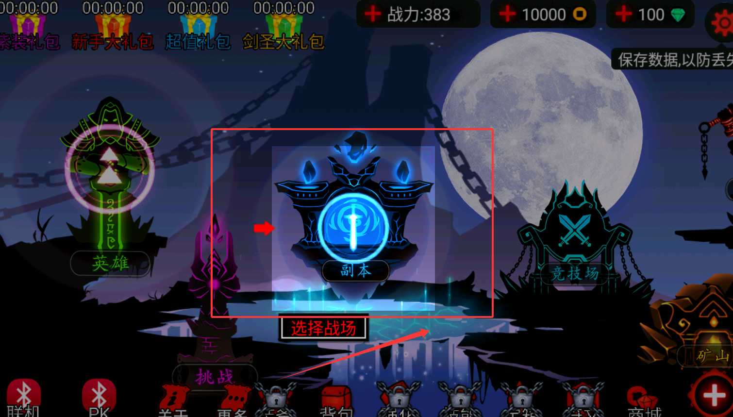 4、通关第三章后,更多玩法就开启了。你会发现“挑战”、“PK”等新按钮亮起。