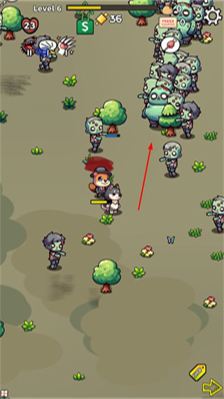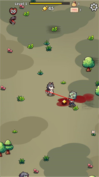 3、进入Level1关卡后操控角色移动,攻击界面中的僵尸以获取金币等奖励。