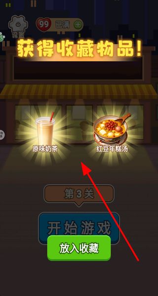 4、通关后获得收藏物品,点击放入收藏按钮,将物品收纳至收藏栏,再开启下一关的游戏。