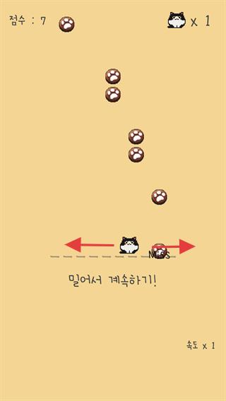 2、操控小猫左右移动,收集掉落的爪印道具。