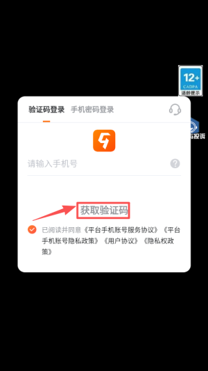 1、进入游戏登录界面,选择验证码登录方式,输入手机号后勾选协议,点击获取验证码完成验证。