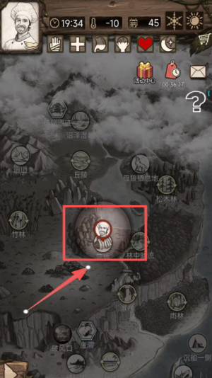 4、打开地图界面,点击代表角色的头像标识,可快速定位当前所处的区域位置。