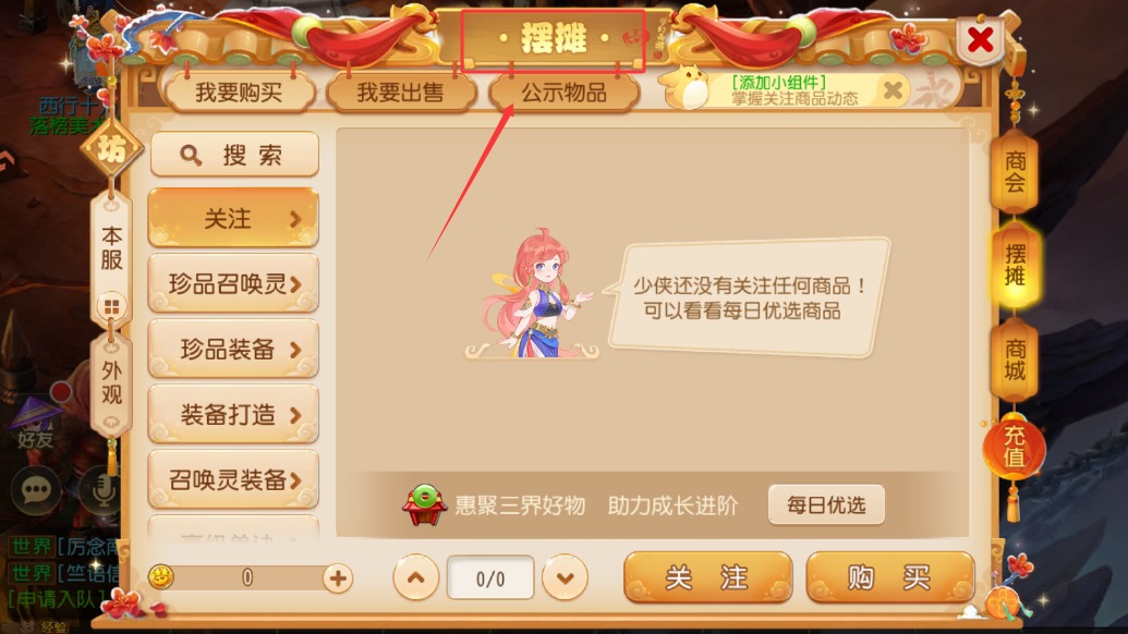 3、商会是个交易的好地方,点击右侧的“商会”按钮进入交易界面,这里分为“我要购买”和“我要出售”两个主要功能,购买物品时先选择分类,再挑选具体商品,确认金额后购买就行。