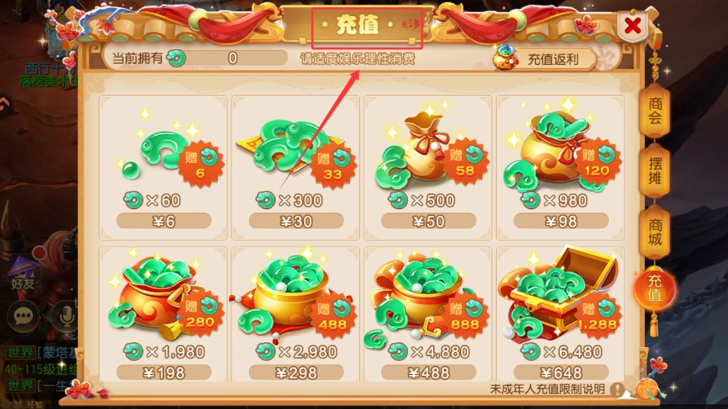 4、如果需要充值,点击界面上的“充值”按钮,会看到从6元到648元多个档位可选,每个档位都标注了赠送数量,选择适合的档位,然后完成支付流程,到账后就可以在游戏中使用啦。
