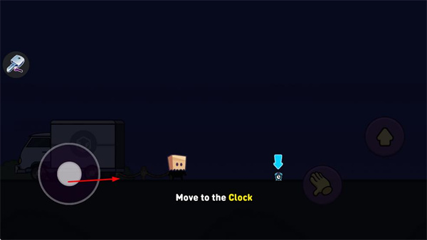 1、操作界面左侧的移动按钮,控制角色朝着时钟方向移动,逐步靠近目标位置。