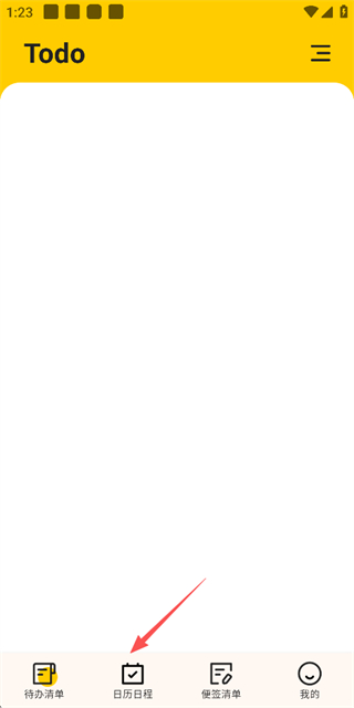 1、在待办清单页点击底部日历日程选项,进入日历日程页面。
