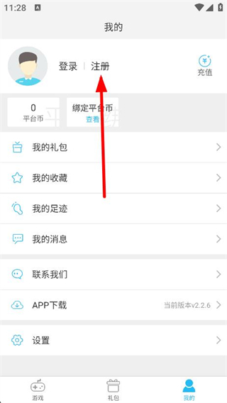 2、在个人页面中,点击注册按钮,进入注册界面。