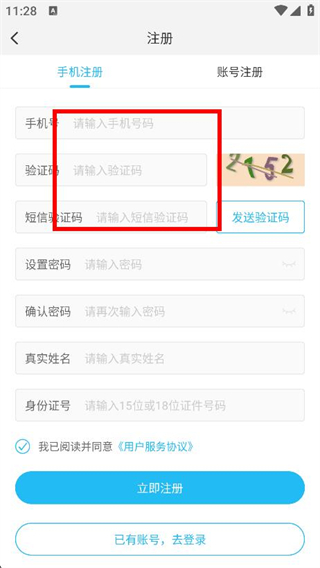 3、在手机号注册页面中,填写手机号码和验证码。
