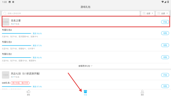 2、在页面中,点击礼包按钮,查看礼包。