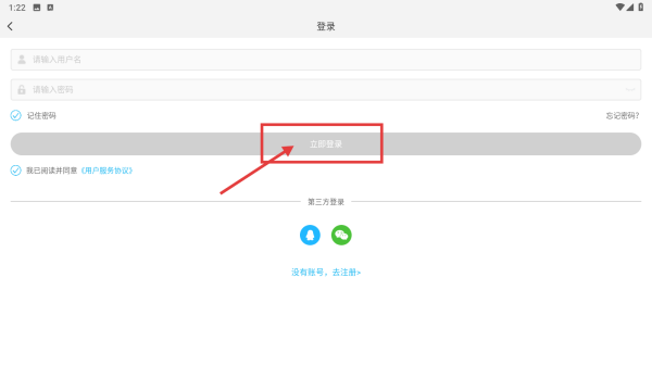 3、在登录页面,点击按钮进入登录页面。