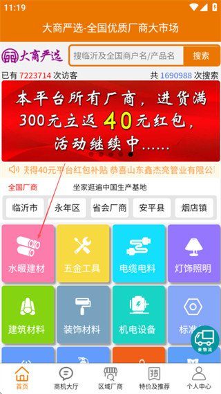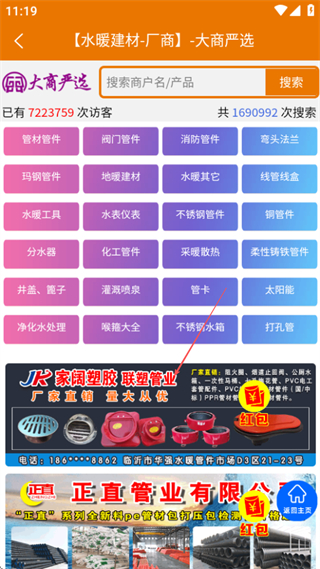1、进入首页后,点击水暖建材分类,可进入对应厂商列表页面。