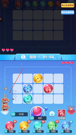 4、通过合理搭配球球类型,持续攻击敌方,在回合时间内如01:58消灭所有敌人,完成关卡挑战。