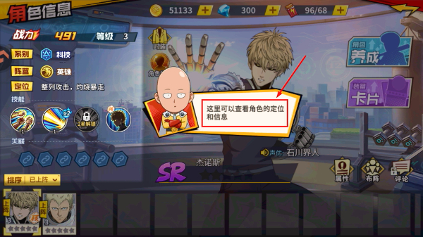 2、在【角色信息】界面查看【杰诺斯】的定位和信息,了解战力与等级,为后续培养做准备。