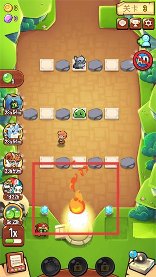 3、点击下方技能按钮释放【火焰】技能,对剩余入侵者造成范围伤害,助力清空关卡敌人。
