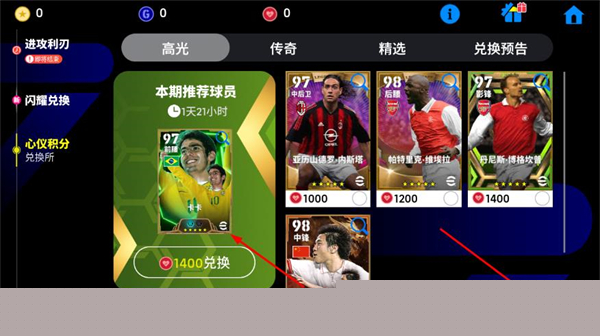 3、在心仪积分兑换页面里,选择目标球员后点击对应兑换,再完成兑换并签下操作,即可用心仪积分兑换该球员。
