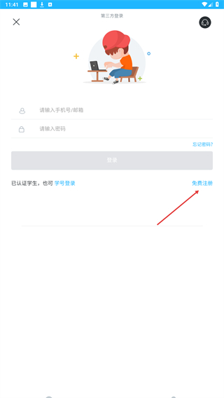 2、在该界面找到免费注册选项并点击,即可进入注册流程的第一步页面。