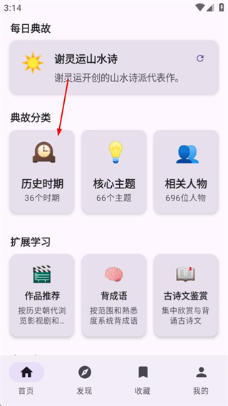 1、进入首页后,点击历史时期选项,可进入历史时期分类页面。