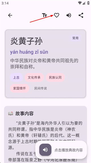 4、在详情页面,可通过对应功能按钮收藏典故内容。