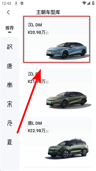 3、在王朝车型库页面,选择目标车型,进入该车型的详情页面。