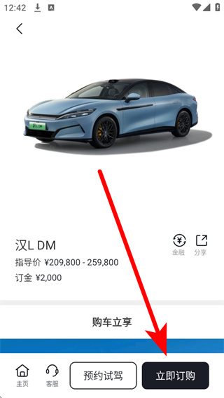 4、在车型详情页面,根据需求点击,即可完成对应的试驾预约或车辆订购操作。