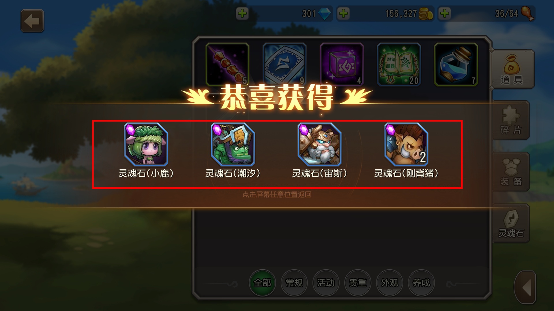 3、开启【神秘魂之匣】后获得【灵魂石(小鹿)】【灵魂石(潮汐)】等,可查看获得的奖励内容。