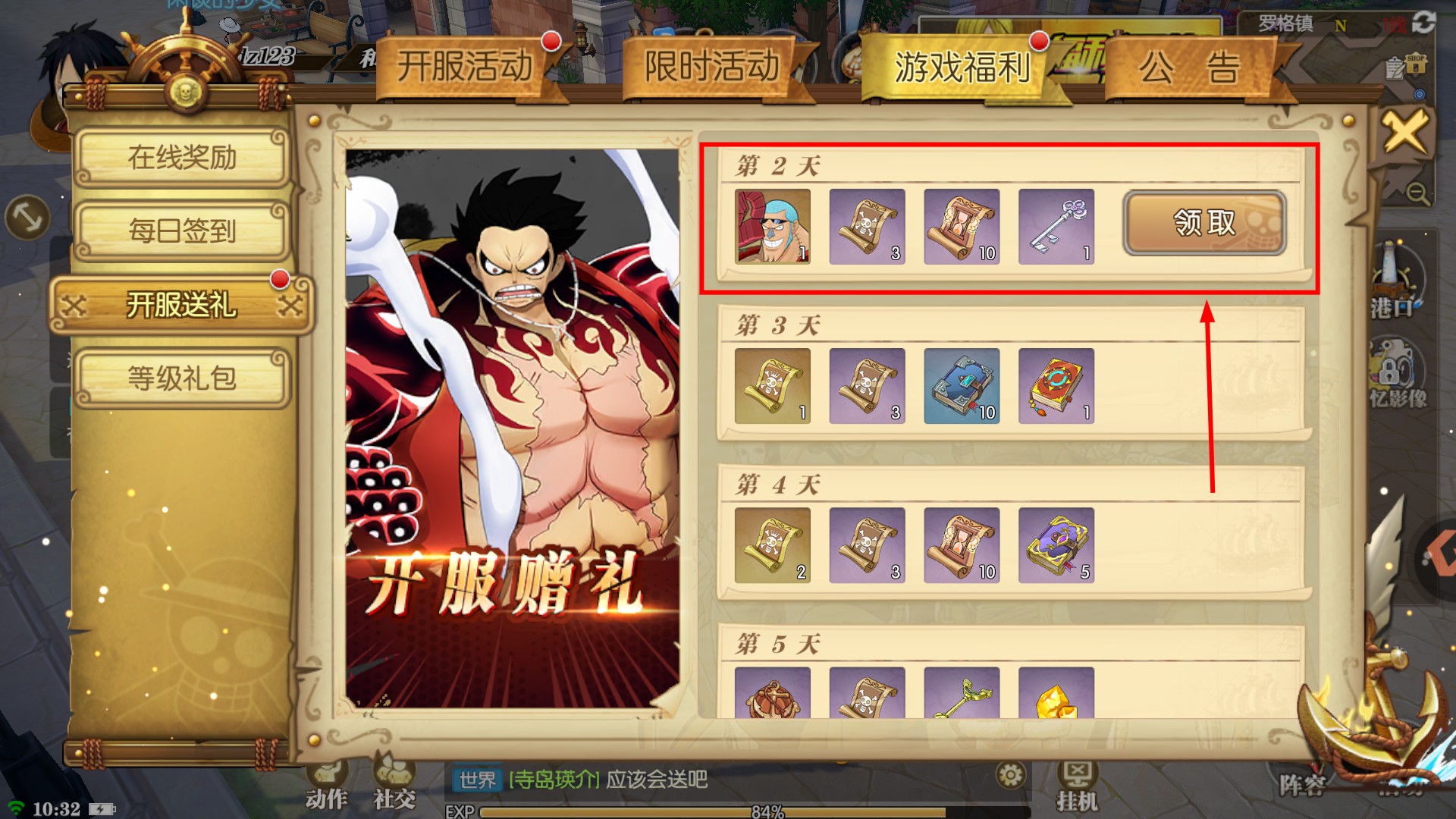 4、开服送礼第二天奖励含角色碎片与钥匙,及时领取积累资源,助力解锁更多游戏功能与玩法。