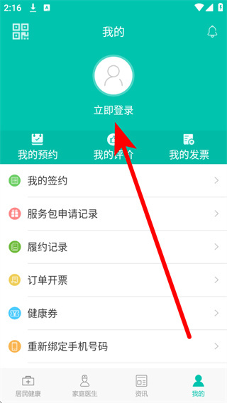 3、在我的页面点击立即登录区域,进入账号登录页面。