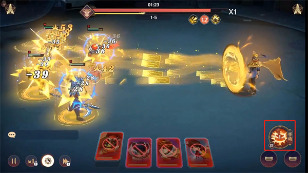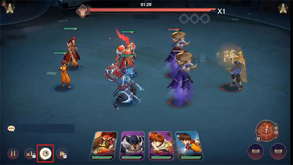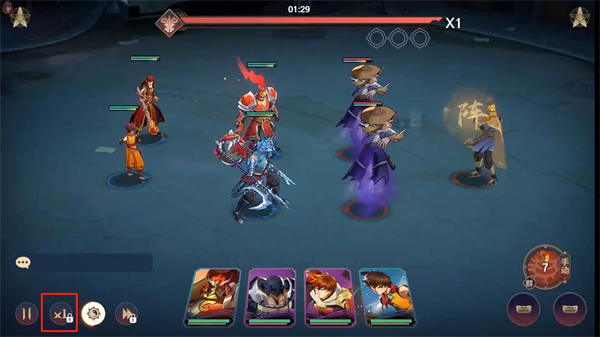 2、正式进入战斗后,在左下角将会看到x1,这个是战斗速度的选择可以加快战斗速度;